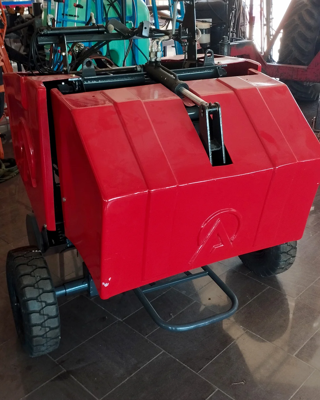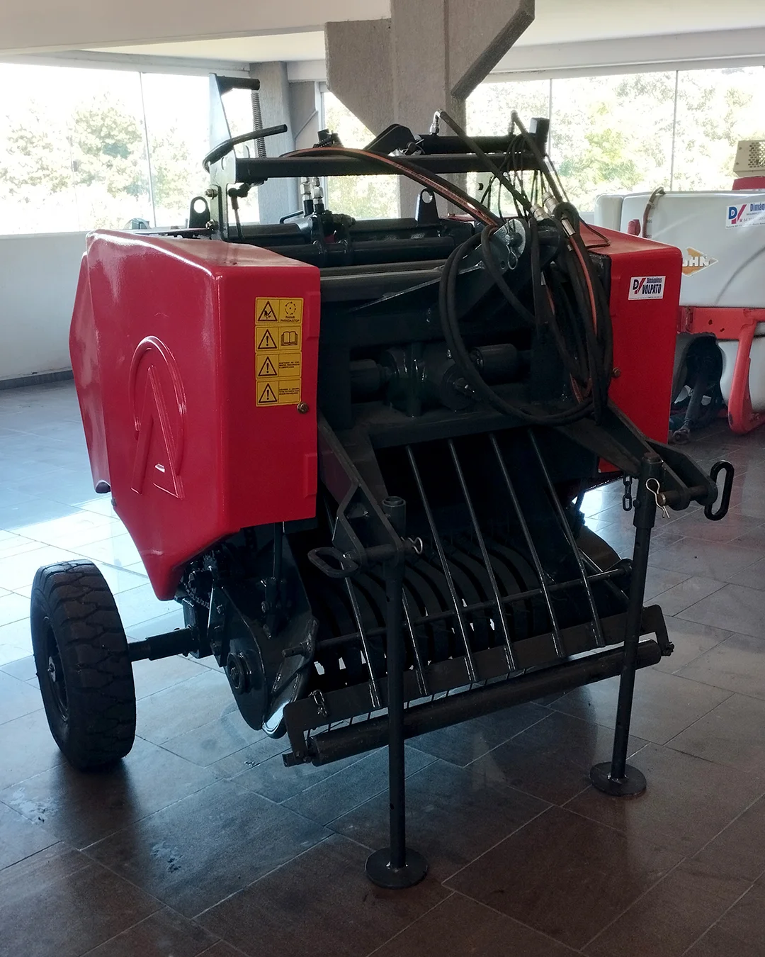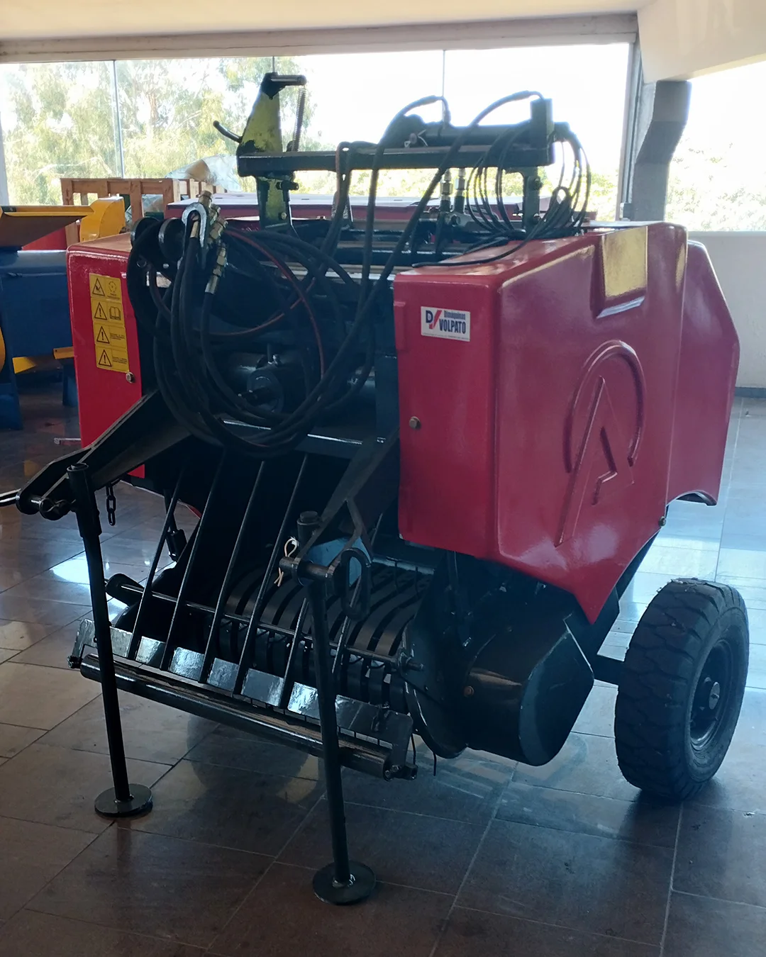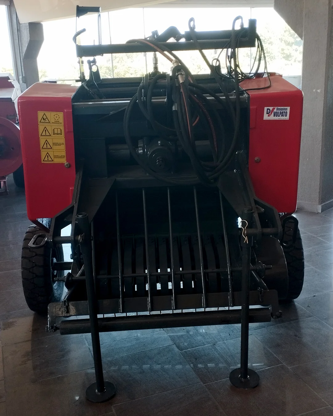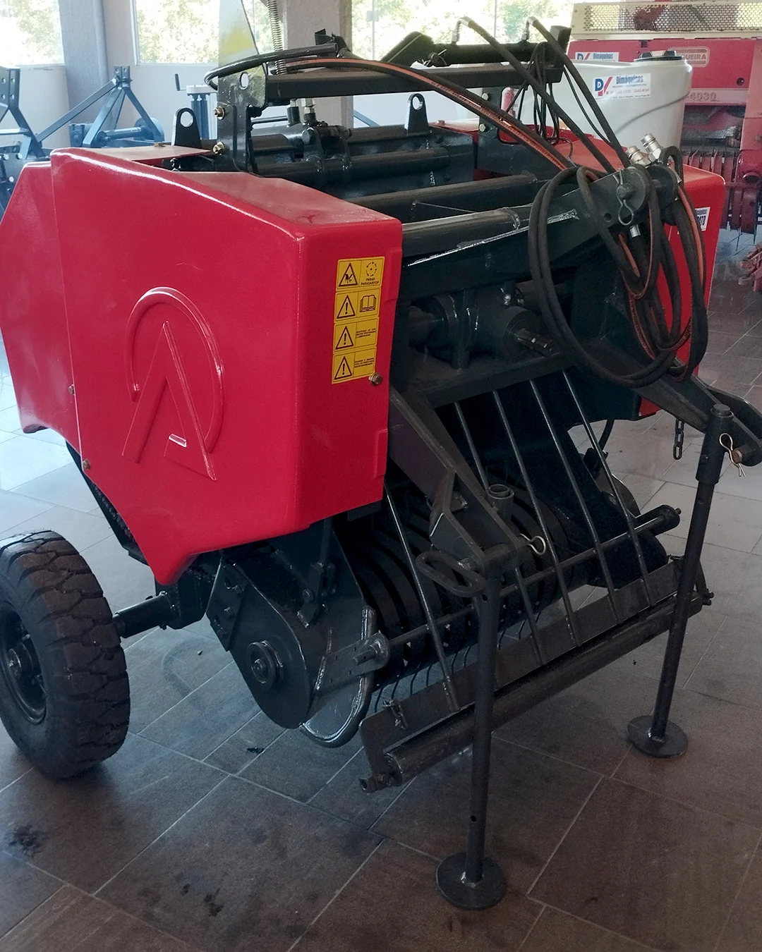 Máquina com função de enfardar plantas forrageiras para produto final do tipo feno ou pré-secado.