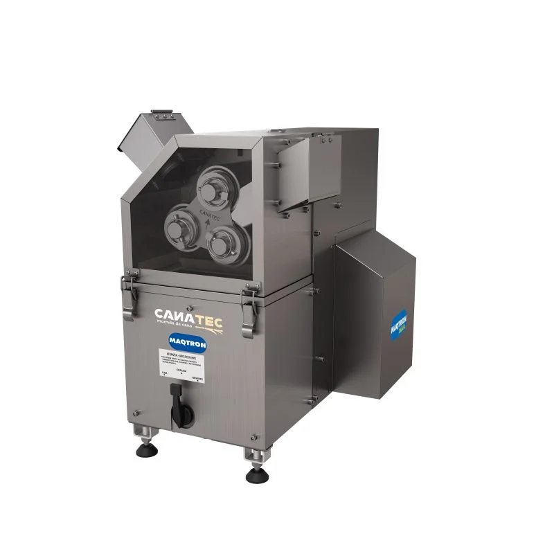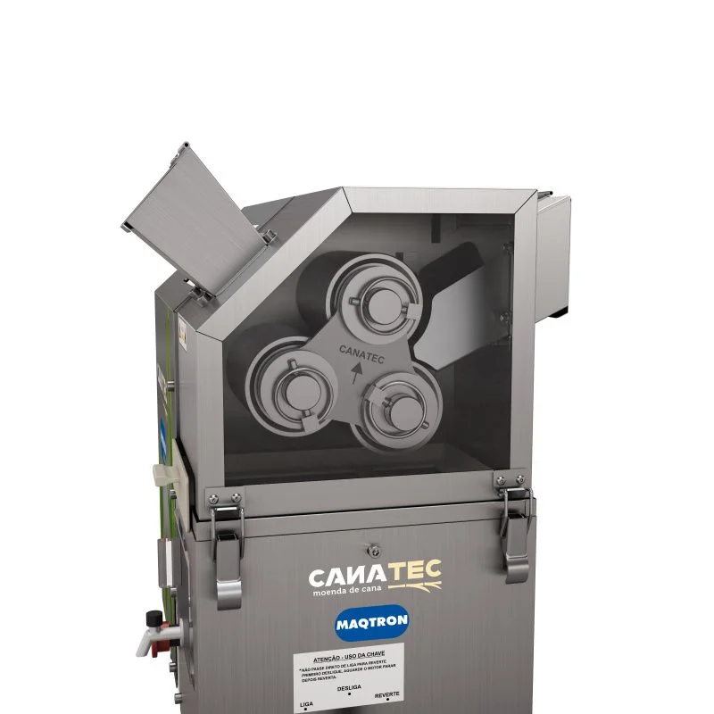 Com três rolos em aço inoxidável AISI 304 e sistema de remoção simples, a moenda facilita a limpeza e a manutenção. O sistema de moagem é isolado da parte elétrica e da transmissão, reduzindo riscos durante a limpeza e evitando a contaminação do caldo com graxas ou sujeiras da transmissão.