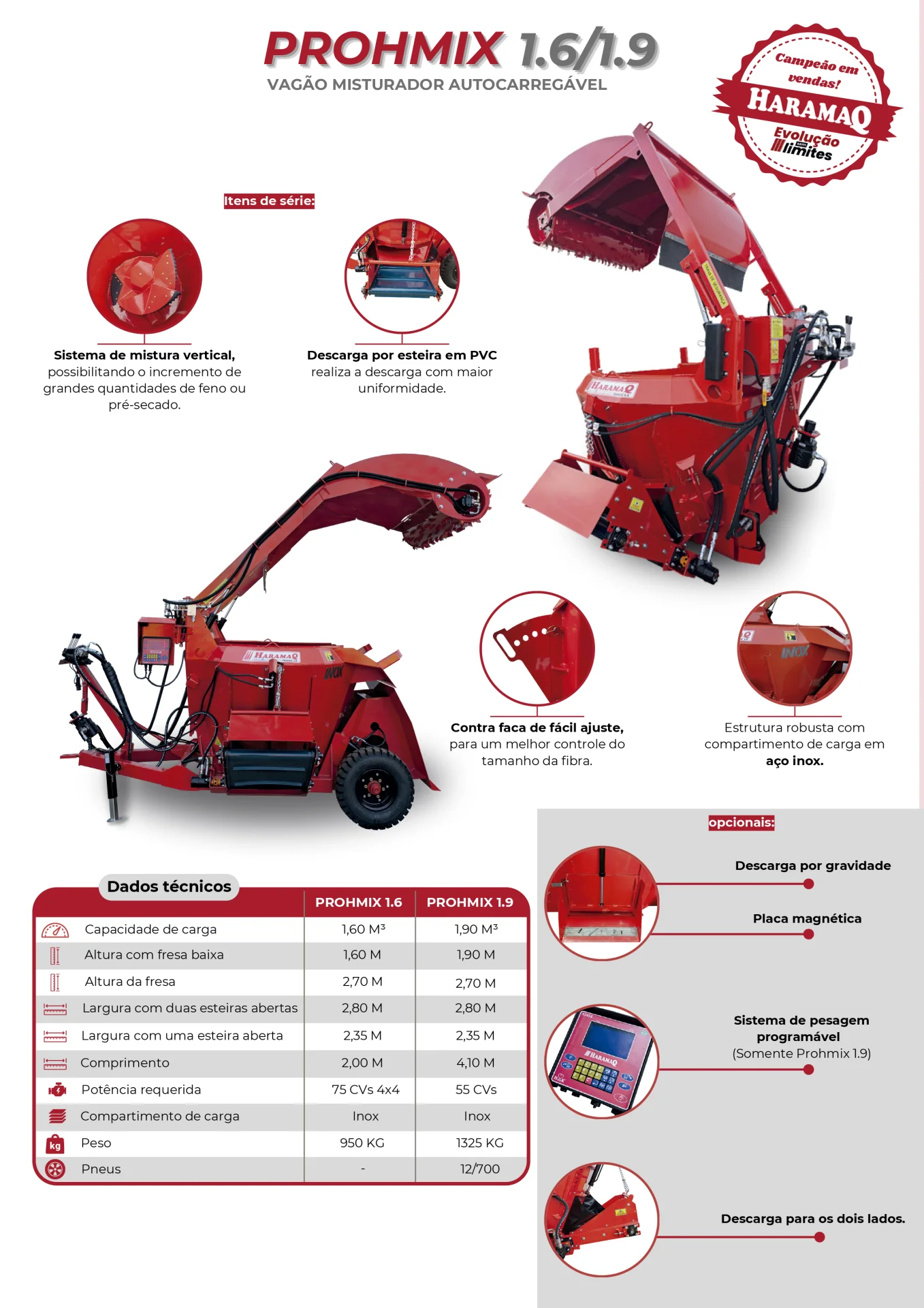 O Vagão Misturador Vertical Autocarregável da HaramaQ Prohmix 1.6/1.9 foi especialmente desenvolvido para pequenos e médios produtores de leite e corte.
