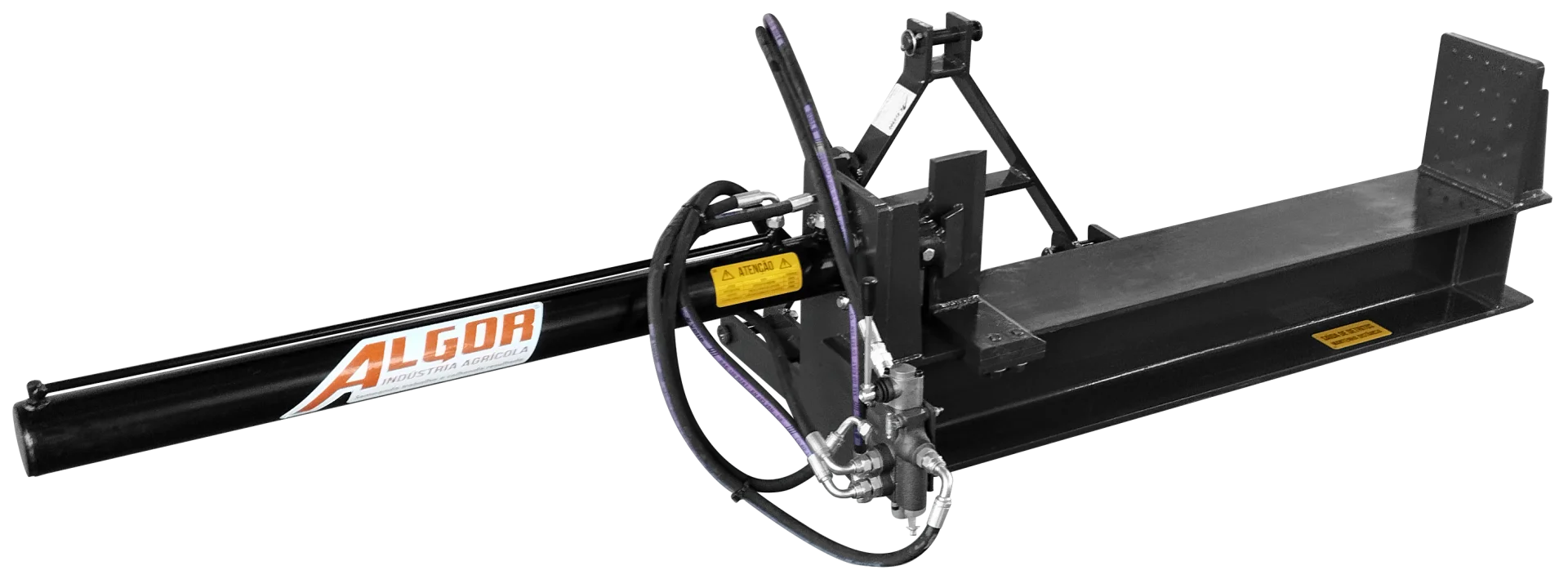 Máquina robusta, apta a rachar toras dos mais variados tipos e dimensões, com engate no terceiro ponto do trator.